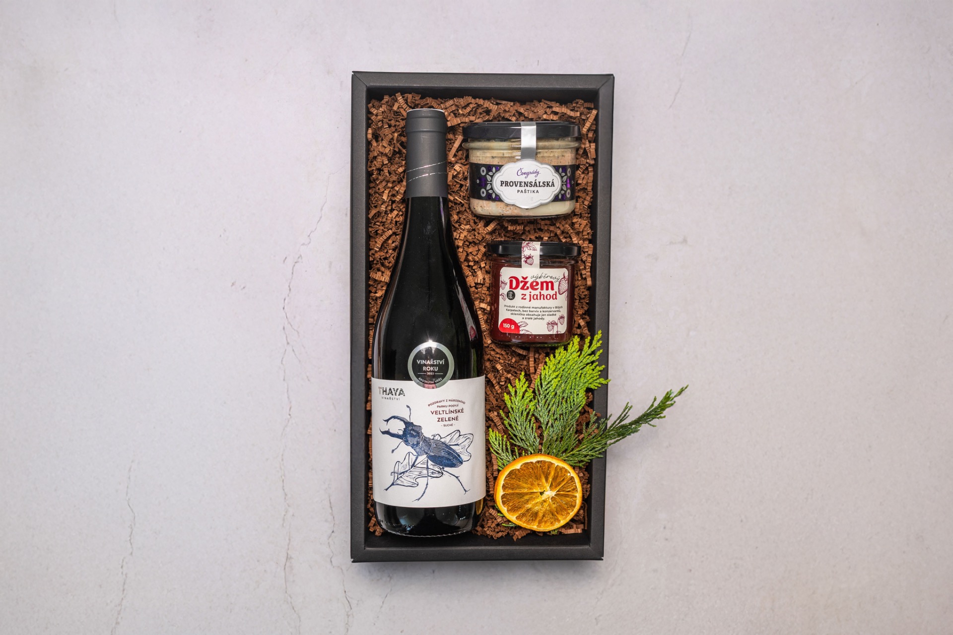 - Bílé víno z Vinařství Thaya (Absolutní vítěz Vinařství roku ČR) - na fotce Veltlínské zelené, ale to již není, v dárku je ze stejného vinařství Ryzlink rýnský